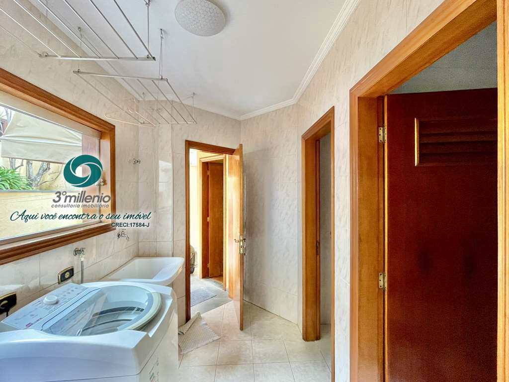 Área de serviço aberta ensolarada e lavanderia fechada com despensa, tanque e banheiro.